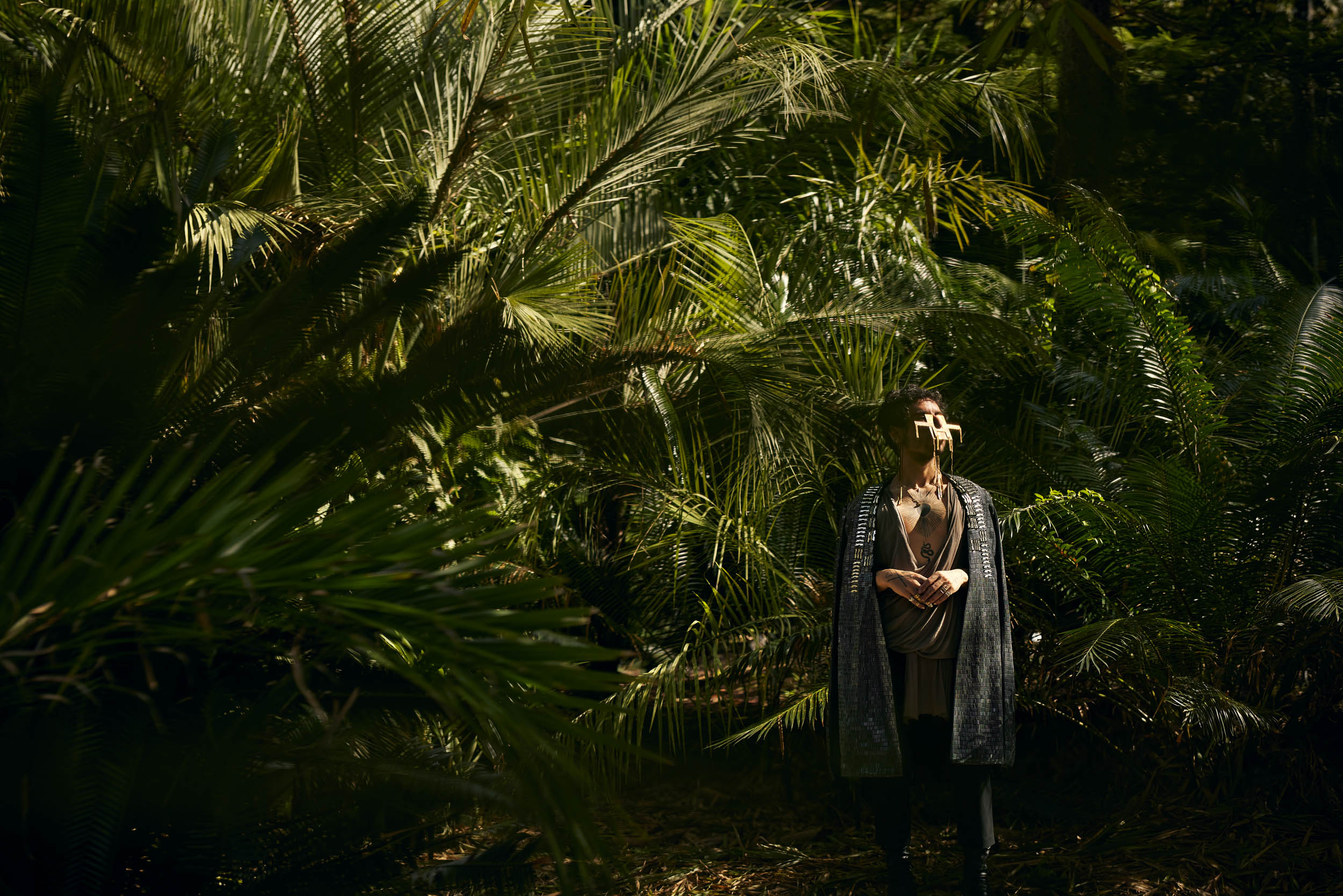 Through a votive, ritualistic process, De Restrepo weaves hand-worked textiles, primarily expanding the possibilities of his signature stapled fabric, la tela engradapa. By transforming the textiles into objects that border sculpture and fabric, he echoes the beliefs and technical artistry of his ancestors’ metalwork and their respect for materials and process.