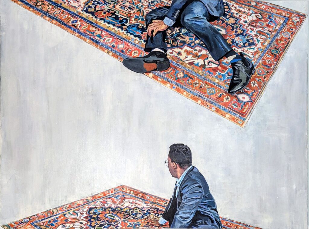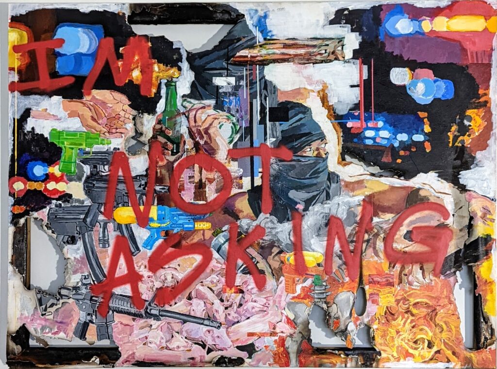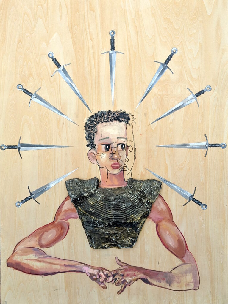 Frantz Lexy is a Haitian-American artist based in Boston, whose vibrant and eclectic paintings are fueled by a spirit of experimentation. His work navigates the intersection of the personal, societal, and spiritual, offering a rich exploration of identity, belonging, humanity’s relationship with nature, and our evolving connection to technology. Employing a diverse range of visual mediums, Frantz examines these themes through paradoxical imagery, creating tension that invites viewers to engage with both their emotional and intellectual responses.