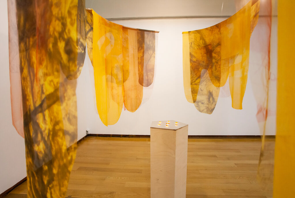 inspiration, they create abstract prints and print-based installations. Each project exists in relation to specific landscapes and sites of engagement with the natural world.