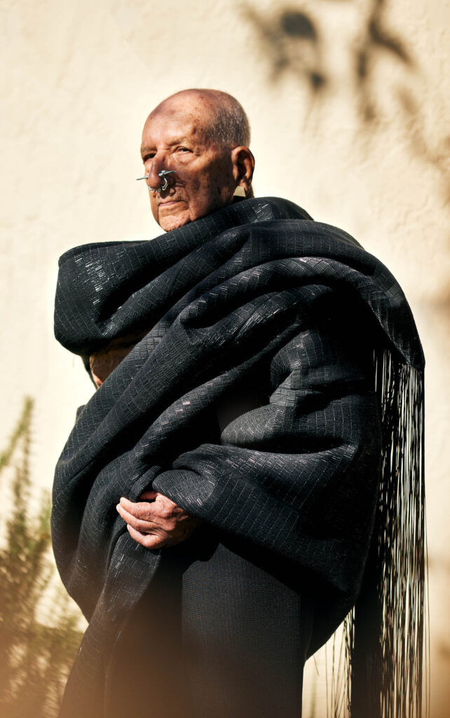 Through a votive, ritualistic process, De Restrepo weaves hand-worked textiles, primarily expanding the possibilities of his signature stapled fabric, la tela engradapa. By transforming the textiles into objects that border sculpture and fabric, he echoes the beliefs and technical artistry of his ancestors’ metalwork and their respect for materials and process.